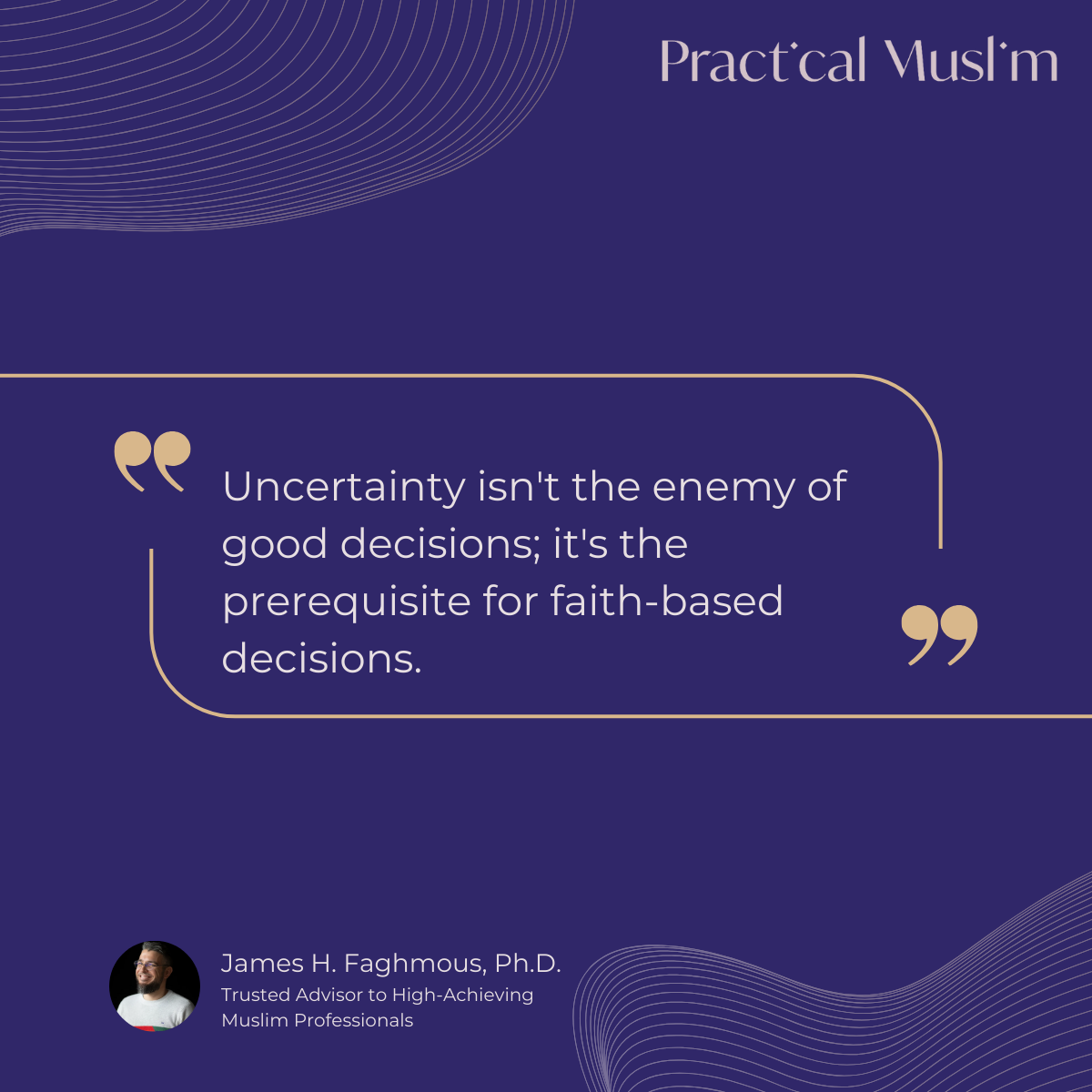 The difference between successful Muslims and spiritually intelligent Muslims is this: successful Muslims make good decisions despite uncertainty. Spiritually intelligent Muslims make great decisions because of their comfort with uncertainty.