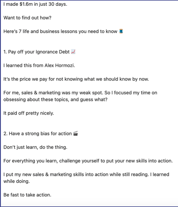 The screenshot I shared mentioned Alex Hormozi's concept of "Ignorance Debt" or the price we pay for not knowing what we should know by now. (I had to look it up myself 😂)